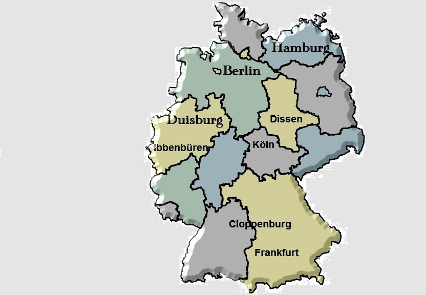 Hamburg, Berlin, Duisburg, Dissen, Ibbenbüren, Köln,Cloppenburg,und Frankfurt